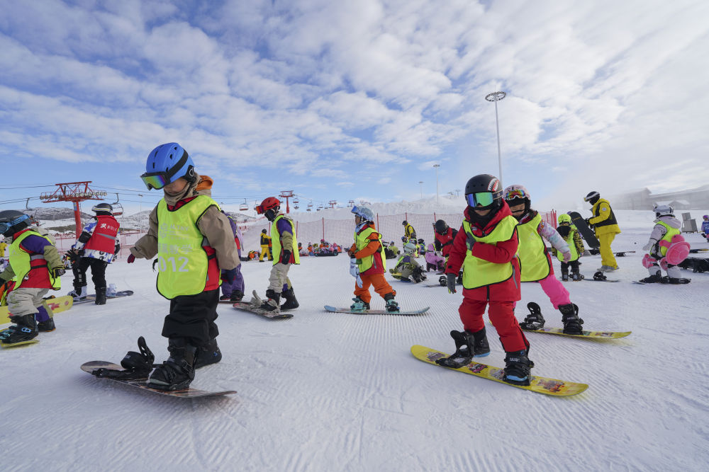 12月1日,學(xué)生在阿勒泰將軍山國際滑雪度假區(qū)練習(xí)單板滑雪。新華社記者 阿曼 攝