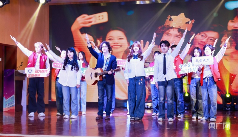 天津外國語大學(xué)師生表演節(jié)目《在名叫天津的地方》(央廣網(wǎng)記者 周思楊 攝)