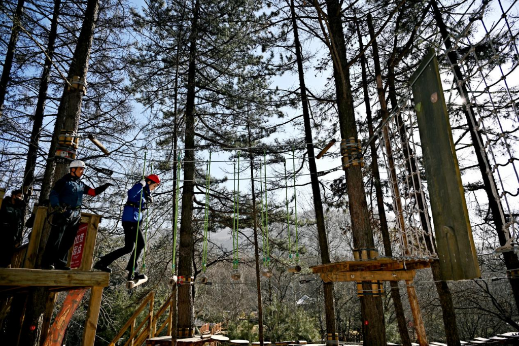 游客在大東溝森林旅游度假區(qū)體驗叢林穿越。新華網 發(fā)