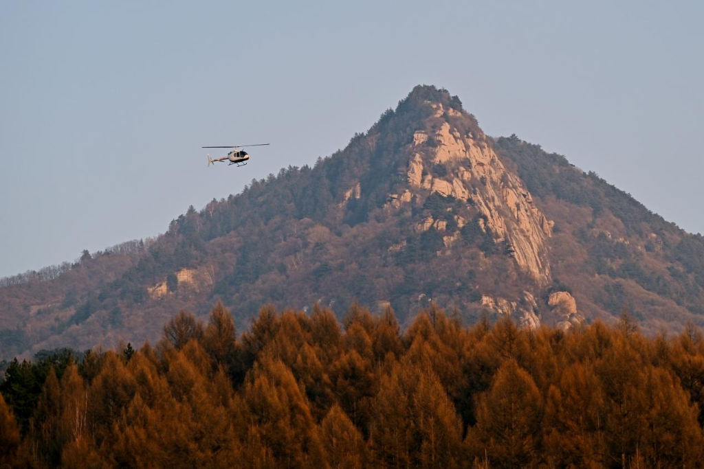 在大東溝森林旅游度假區(qū),游客搭乘直升機欣賞美景。新華網 發(fā)