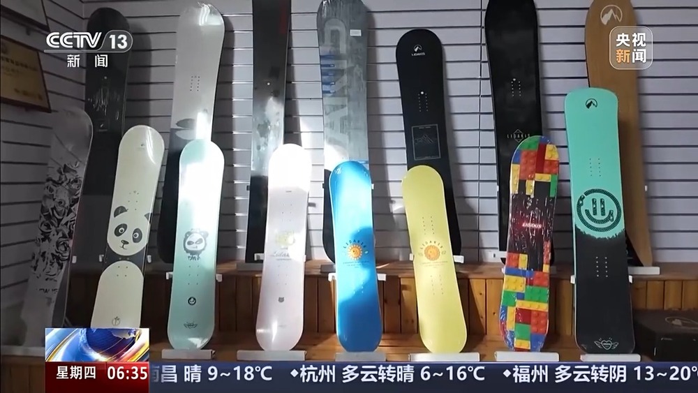 某冰雪裝備生產(chǎn)企業(yè)負(fù)責(zé)人 靳惠媛:2002年的時(shí)候,我正好是做外貿(mào)生意,趕上一個(gè)冬博會(huì),走到一個(gè)展位上,全是板子。那時(shí)候沒有見過這樣的滑雪板。他說剛剛進(jìn)入中國(guó),在國(guó)外特別流行了,就進(jìn)貨了10塊單板。