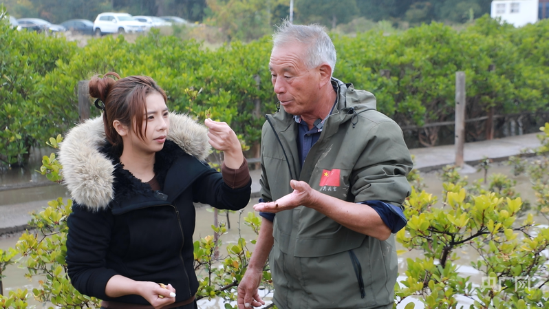 吳昌根女兒今年加入保護(hù)紅樹(shù)林隊(duì)伍,圖為吳昌根在給女兒講解紅樹(shù)林育苗知識(shí)(央廣網(wǎng)發(fā) 羅凱文 攝)