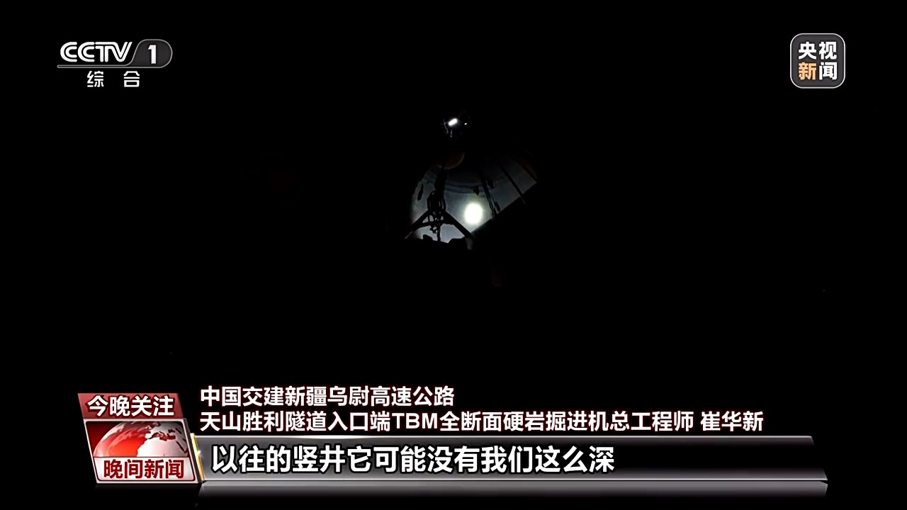中國(guó)交建新疆烏尉高速公路天山勝利隧道入口端TBM全斷面硬巖掘進(jìn)機(jī)總工程師 崔華新:現(xiàn)在我們所處的位置,是我們豎向掘進(jìn)機(jī)開挖完成之后,我們豎井的最后一道工序也就是二襯。隨著我們的施工進(jìn)度不斷提高,我們經(jīng)歷黑暗的時(shí)間也是越來越短的。