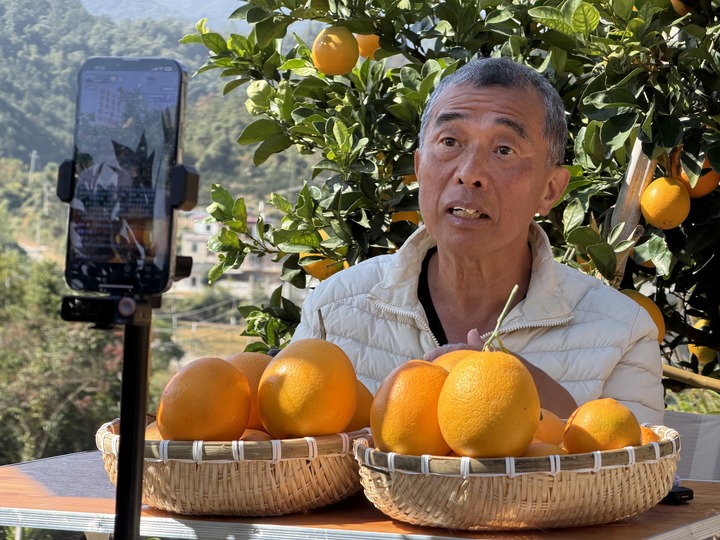 臺灣嘉義的王文瑞在祖籍地——江西贛州直播推介贛南臍橙,他的“臺灣阿公”新媒體賬號吸引全網(wǎng)超100萬粉絲關(guān)注。新華社記者 陳柱佐 攝