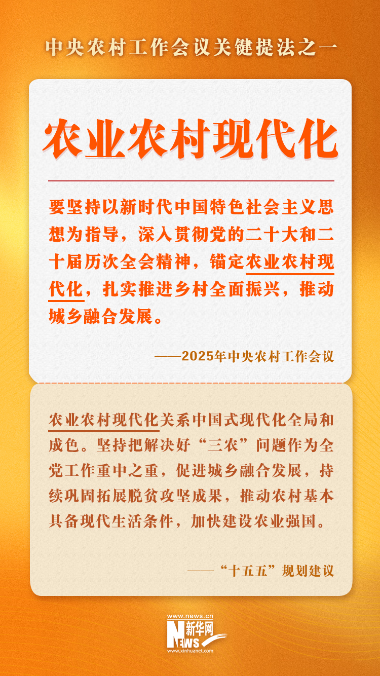 近日召開(kāi)的中央農(nóng)村工作會(huì)議分析了當(dāng)前“三農(nóng)”工作面臨的形勢(shì)和挑戰(zhàn),部署2026年“三農(nóng)”工作。為更好幫助網(wǎng)友理解會(huì)議精神,新華網(wǎng)梳理了會(huì)議提出的部分關(guān)鍵提法,一起來(lái)學(xué)習(xí)。