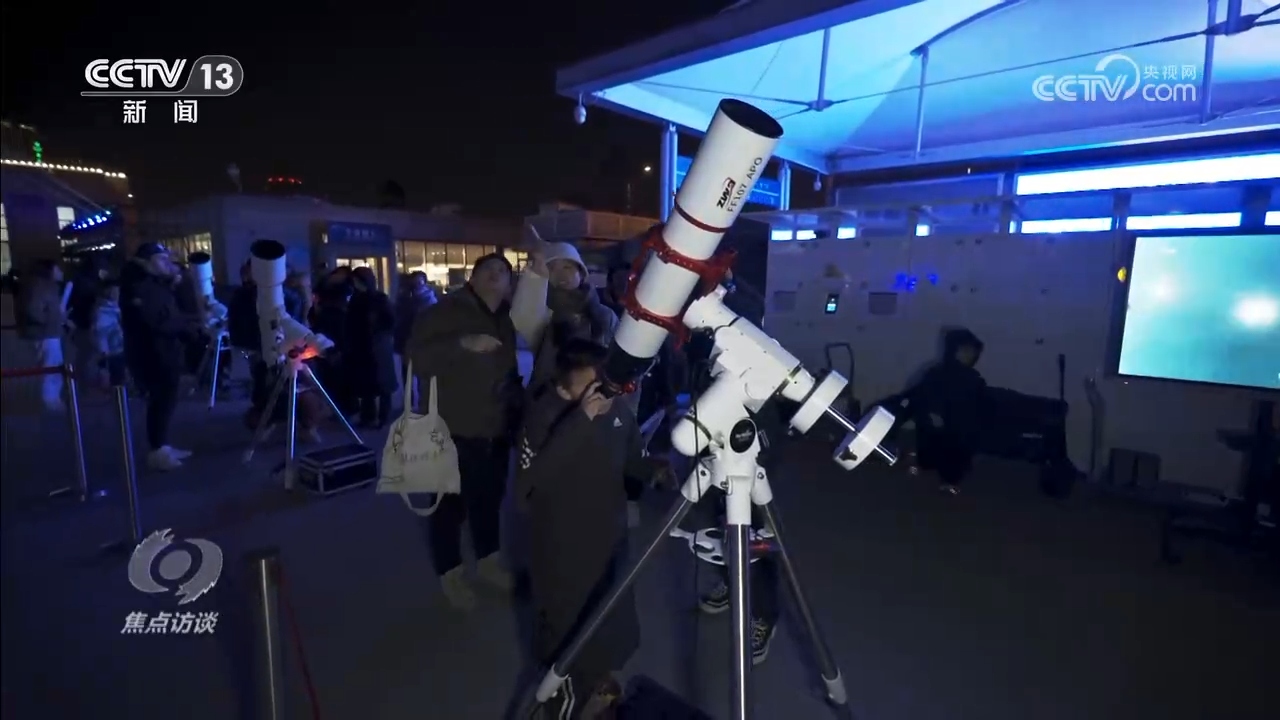 另一邊,北京天文館的觀星臺上,一場“宇宙級”的浪漫儀式正在上演,孩子們圍在望遠(yuǎn)鏡前,他們在等待新年的第一縷星光,穿越浩瀚的星際空間,準(zhǔn)時(shí)抵達(dá)地球。