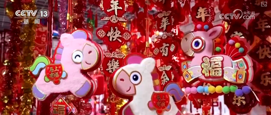 生肖馬年元素的產(chǎn)品尤其熱銷,不少商家還將不同的節(jié)慶飾品進(jìn)行組合銷售,方便消費(fèi)者購買。