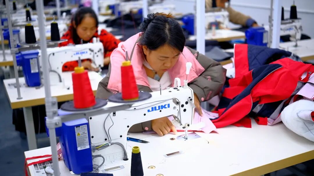 嶄新明亮的車間內(nèi),“噠噠噠”的縫紉機(jī)聲此起彼伏,工人們正全神貫注地忙碌著。“我都50多歲了,還能在家門口找到穩(wěn)定的工作,也不耽誤照顧孫子。”排碧村村民石虹艷一邊說著話,一邊手不停。