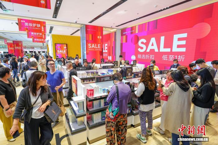 圖為元旦假期,cdf海口國際免稅城迎來購物熱潮,眾多游客前來選購心儀商品。 中新網(wǎng)記者 駱云飛 攝