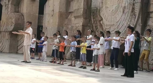 家長帶著孩子參加“乾源文化”打坐練功