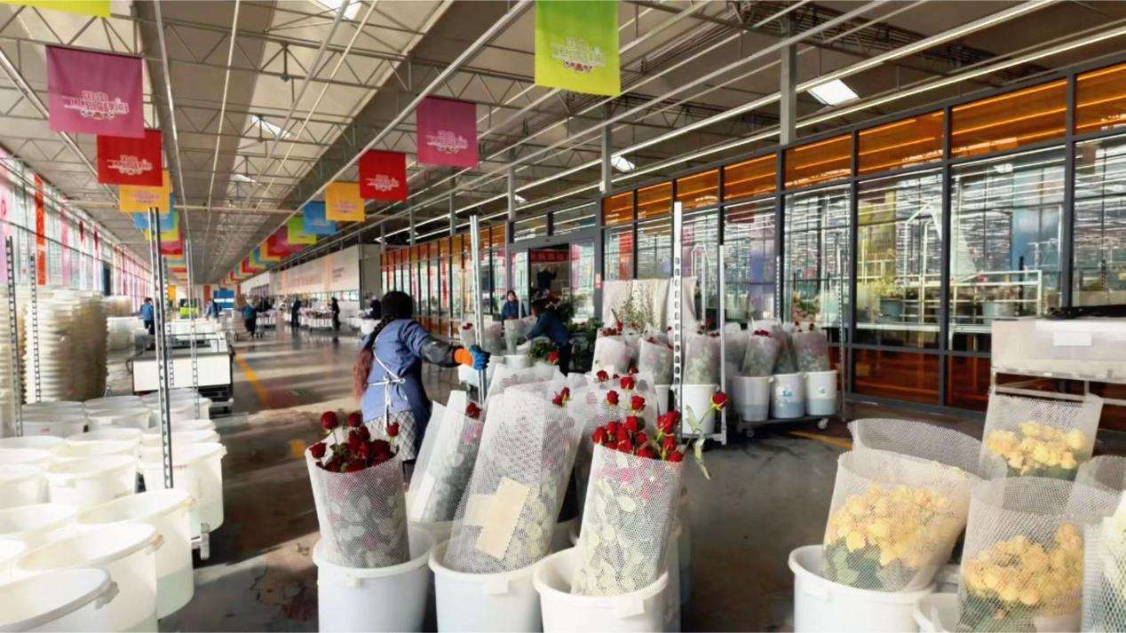 基地里,玫瑰以每40天一茬的速度茁壯生長,日產(chǎn)鮮切花達20萬枝。企業(yè)提供了超過500個就業(yè)崗位,不僅吸引本村村民,還有很多來自周邊縣區(qū)的務工者。許多像婷婷一樣的女工,在這里找到了人生第一份工作。