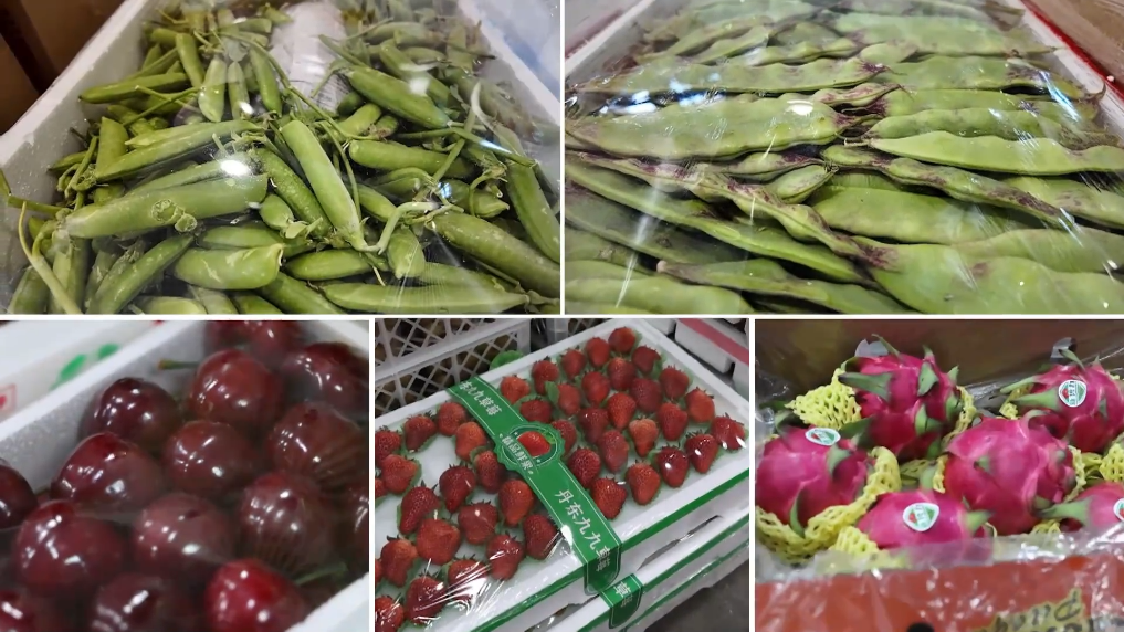 盤錦的堿地西紅柿、河蟹、大米,丹東東港的藍(lán)莓、草莓,鞍山的南果梨,從這里裝車發(fā)運(yùn),最快在24小時(shí)之內(nèi)就可以抵達(dá)南方的餐桌。