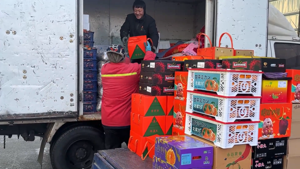 春節(jié)將至,年節(jié)消費(fèi)市場一片火熱。位于遼寧省盤錦市的東北新發(fā)地農(nóng)產(chǎn)品供應(yīng)鏈中心,有從南方發(fā)運(yùn)過來的新鮮果蔬,還有即將發(fā)往全國各地的東北特產(chǎn),進(jìn)進(jìn)出出的年貨,讓南北的年味在這里相遇、交融。