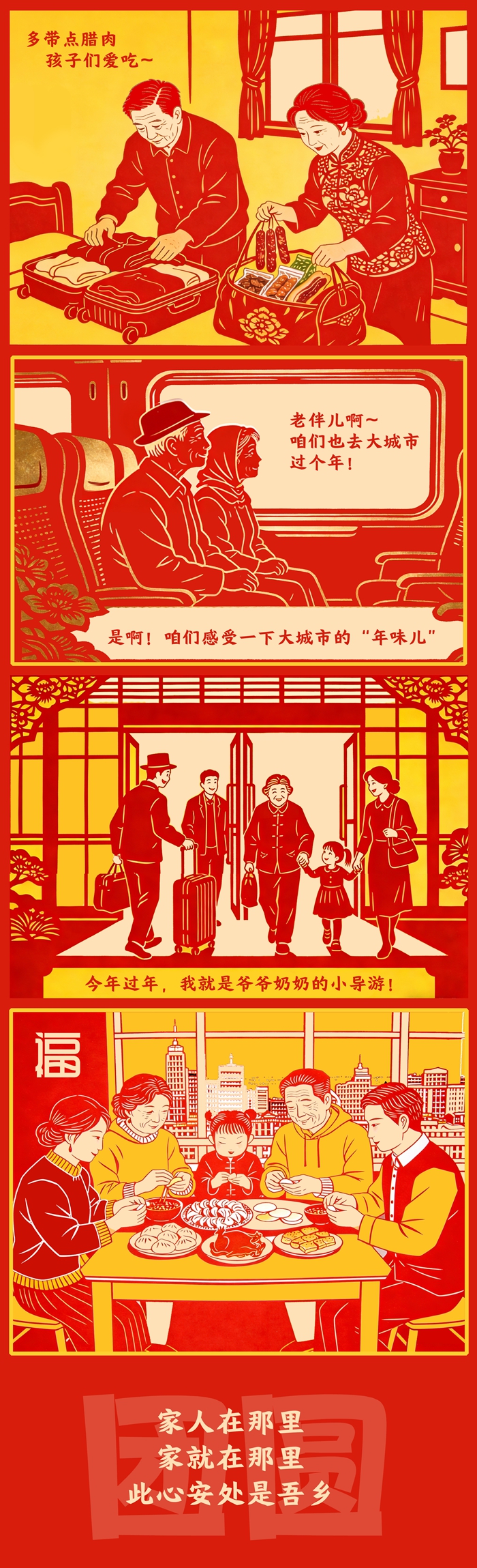 反向春運,遠不止出行方式之變,它見證著中國人對“家”的理解,從故土坐標轉(zhuǎn)向親情紐帶。變的,是團圓路徑的智慧選擇;不變的,是對親情的永恒珍視。一個充滿活力的現(xiàn)代社會,正以其包容與溫度,為每一種真摯奔赴鋪就道路。流動中國的底色是團圓,動力是親情,終點永遠是家之所在。(文字/泰軒萍 漫畫/泰軒萍 編輯/喬佳新)