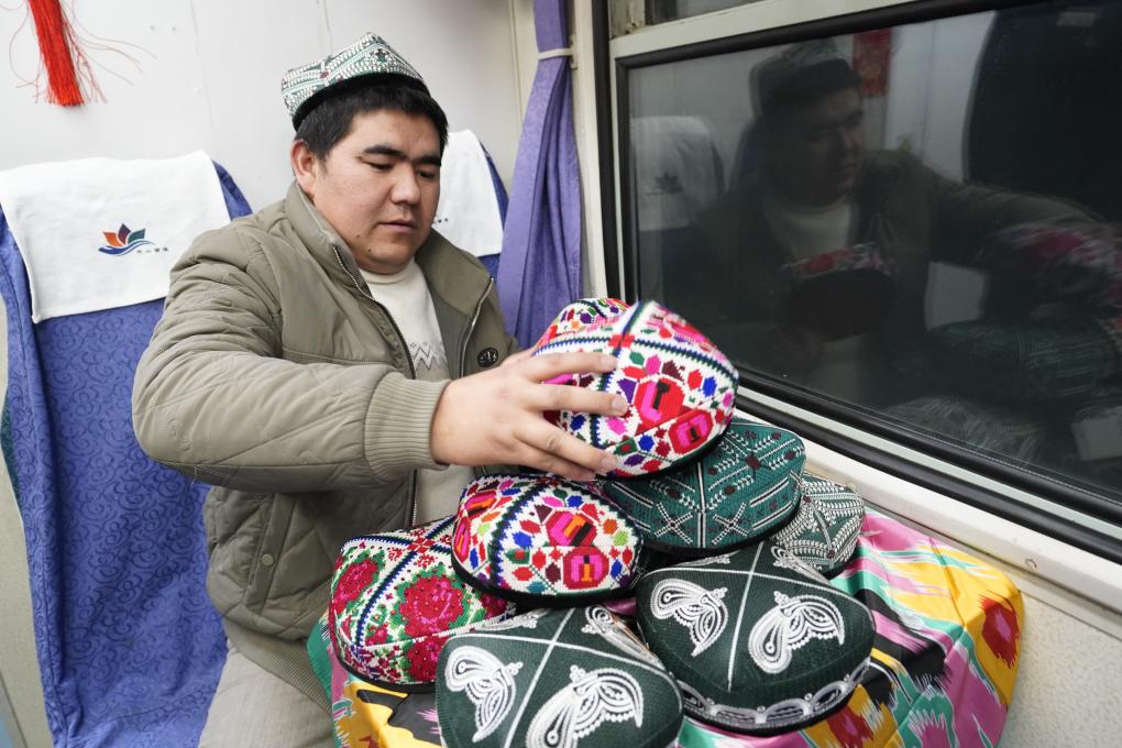 喀什市商戶正在準(zhǔn)備列車“巴扎”的商品。新華社記者白志強(qiáng)攝
