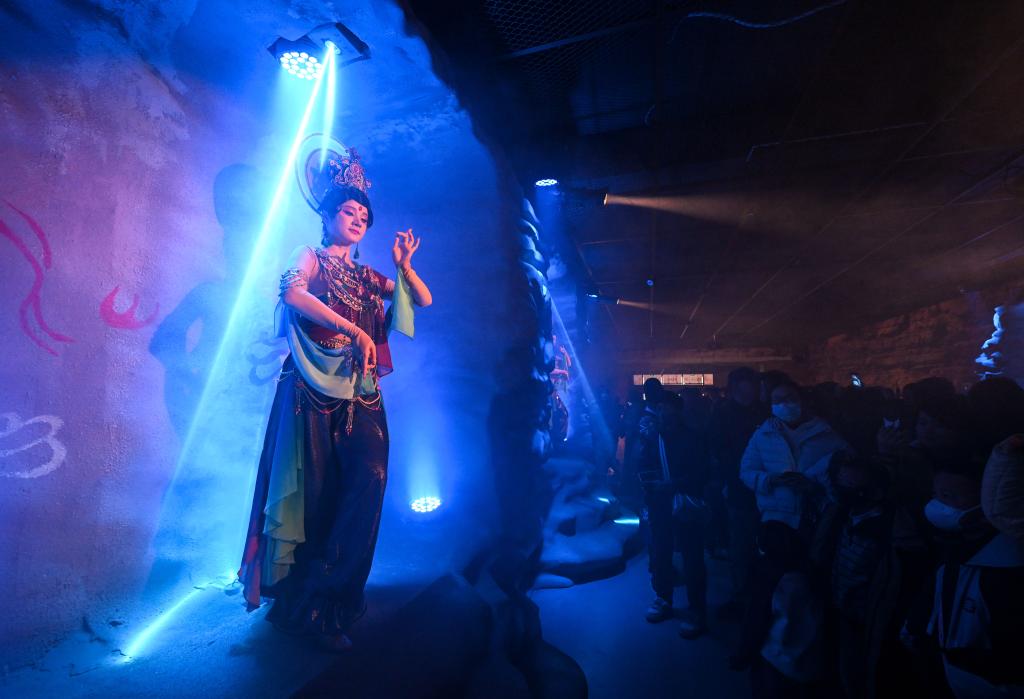 這是世界文化遺產(chǎn)西夏陵“第七屆博物館里過(guò)大年”核心活動(dòng)——《西夏樂(lè)集》行浸式演藝現(xiàn)場(chǎng)。300米長(zhǎng)的通道被打造成行進(jìn)式場(chǎng)景,再現(xiàn)宋夏時(shí)期多民族共生、多元文化交融的鮮活圖景,給觀眾帶來(lái)邊走邊看、融入演出的沉浸式體驗(yàn)。