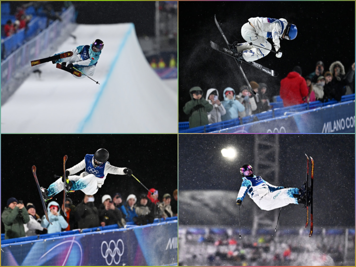 圖為李方慧(左上)、谷愛(ài)凌(右上)、張可欣(左下)、劉奕杉(右下)在比賽中。