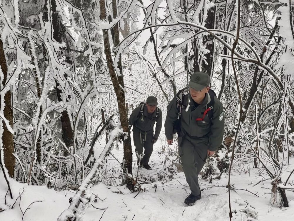 雖已立春,大熊貓國家公園滎經(jīng)片區(qū)依然大雪紛飛。記者從四川雅安滎經(jīng)縣城出發(fā)前往大相嶺,山下天還晴著,車拐進(jìn)山路,霧就從溝谷里漫上來;再往上,細(xì)雨打著樹枝上的冰棱,把山路潤得發(fā)亮。到了大相嶺自然保護(hù)區(qū)管護(hù)中心,車窗外已是白茫茫一片,氣溫低至零下。