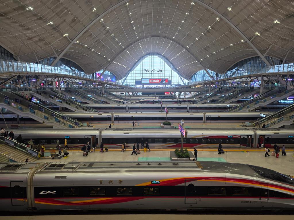 車窗外,華北平原褪去了冬日蕭索,廣袤大地在暖陽下延展,正靜待春耕。復(fù)興號高鐵掠過中原腹地,車廂顯示屏上穩(wěn)定顯示著時速350公里的數(shù)字。