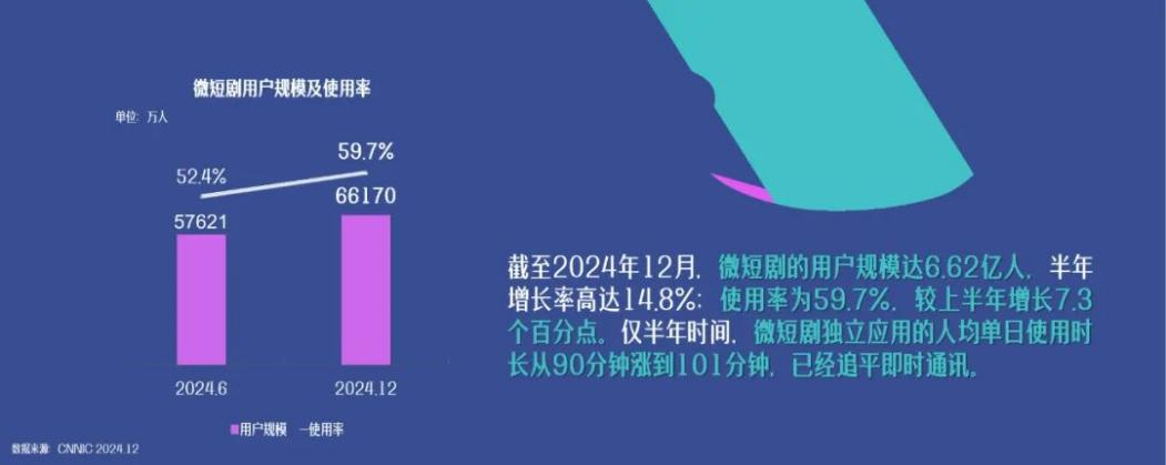 據(jù)《中國(guó)網(wǎng)絡(luò)視聽發(fā)展研究報(bào)告(2025)》顯示,截至2024年12月,微短劇用戶規(guī)模達(dá)6.62億人,使用率為59.7%,市場(chǎng)規(guī)模突破500億元,2025年預(yù)計(jì)已破千億元。微短劇的爆發(fā)式增長(zhǎng)背后,關(guān)于內(nèi)容審核、未成年人保護(hù)、精品化發(fā)展的討論,正在兩會(huì)會(huì)場(chǎng)內(nèi)引發(fā)深度思考。