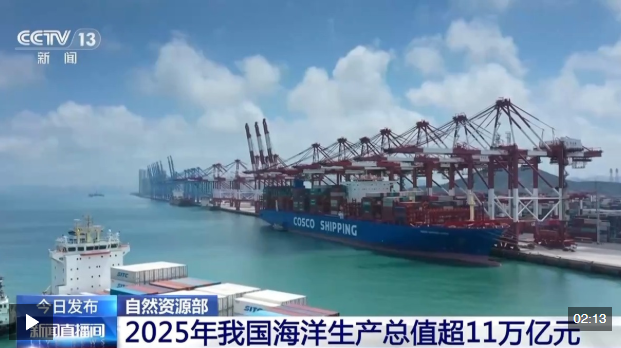 自然資源部今天(3月13日)發(fā)布消息,2025年,我國海洋經(jīng)濟(jì)穩(wěn)中有進(jìn),海洋生產(chǎn)總值達(dá)110180億元,占國內(nèi)生產(chǎn)總值比重7.9%。
