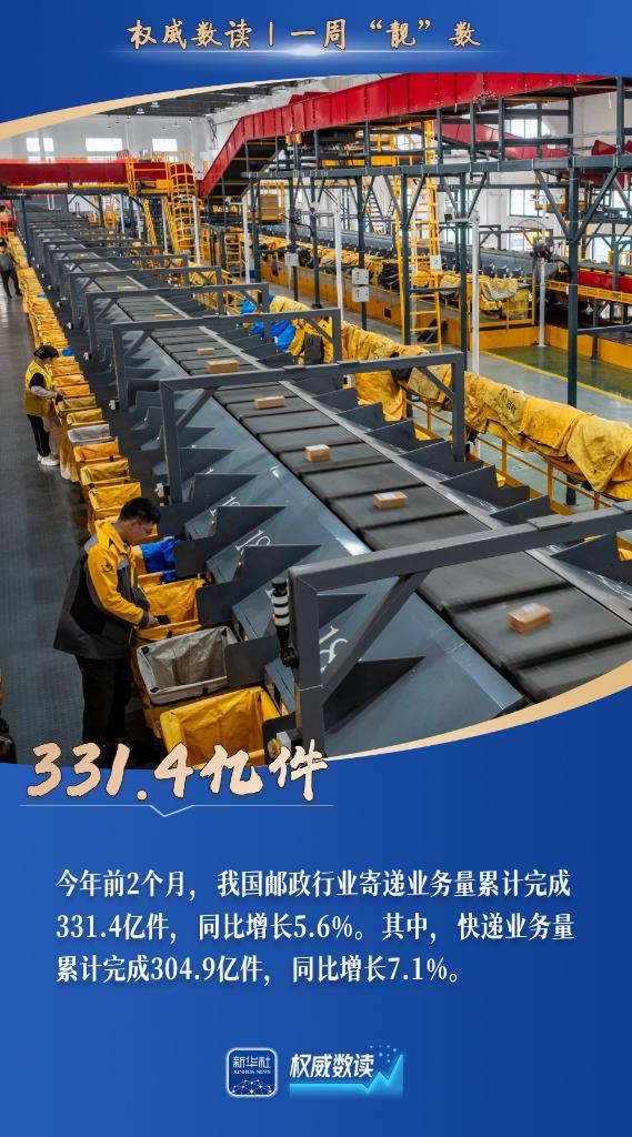 今年前2個月,我國郵政行業(yè)寄遞業(yè)務(wù)量累計完成331.4億件;全國規(guī)模以上工業(yè)增加值同比增長6.3%;截至3月15日,全國已有16個省份啟動春灌,累計供水49億立方米,灌溉面積達(dá)5700萬畝……本周,這些數(shù)據(jù),最值得關(guān)注!