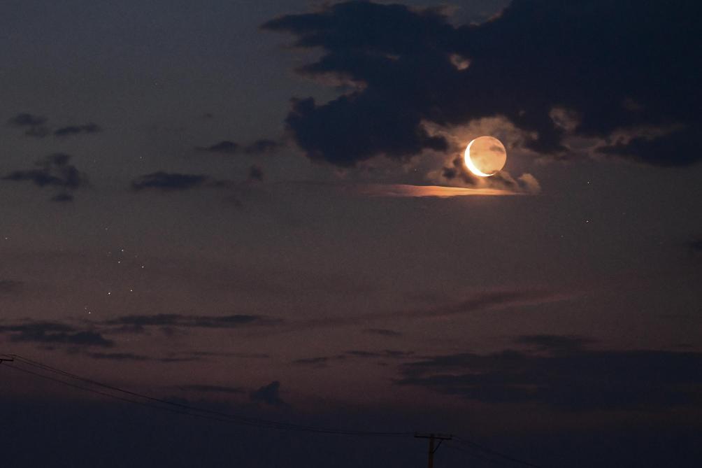 “19時(shí)天黑下來(lái),蛾眉月和昴星團(tuán)將出現(xiàn)在西方的天空中,兩者的角距離僅1度多,大致相當(dāng)于兩個(gè)滿月的寬度。這是非常適合使用雙筒望遠(yuǎn)鏡以及低倍率天文望遠(yuǎn)鏡觀測(cè)的天象,也十分適合拍攝,在這個(gè)月相下還能夠拍到‘新月抱舊月’與昴星團(tuán)同輝。”中國(guó)天文學(xué)會(huì)會(huì)員、天津科學(xué)技術(shù)館天文科普專家劉仲利說(shuō)。