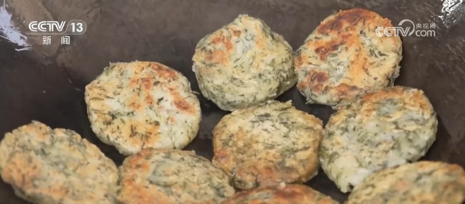 做蒿子粑,選料是第一步。早上新鮮采摘的蒿子清香撲鼻,清洗后焯一下水就能去除它的苦澀味。熬煮好的臘肉蒿子湯倒入糯米和秈米混合的米粉中,揉搓成小團(tuán)再壓扁。起鍋燒油煎至雙面酥黃,蒿子粑就做好了。在桐城市,蒿子粑還走進(jìn)工廠,進(jìn)行規(guī)?;a(chǎn),通過(guò)直播進(jìn)行線上銷售,深受消費(fèi)者喜愛。