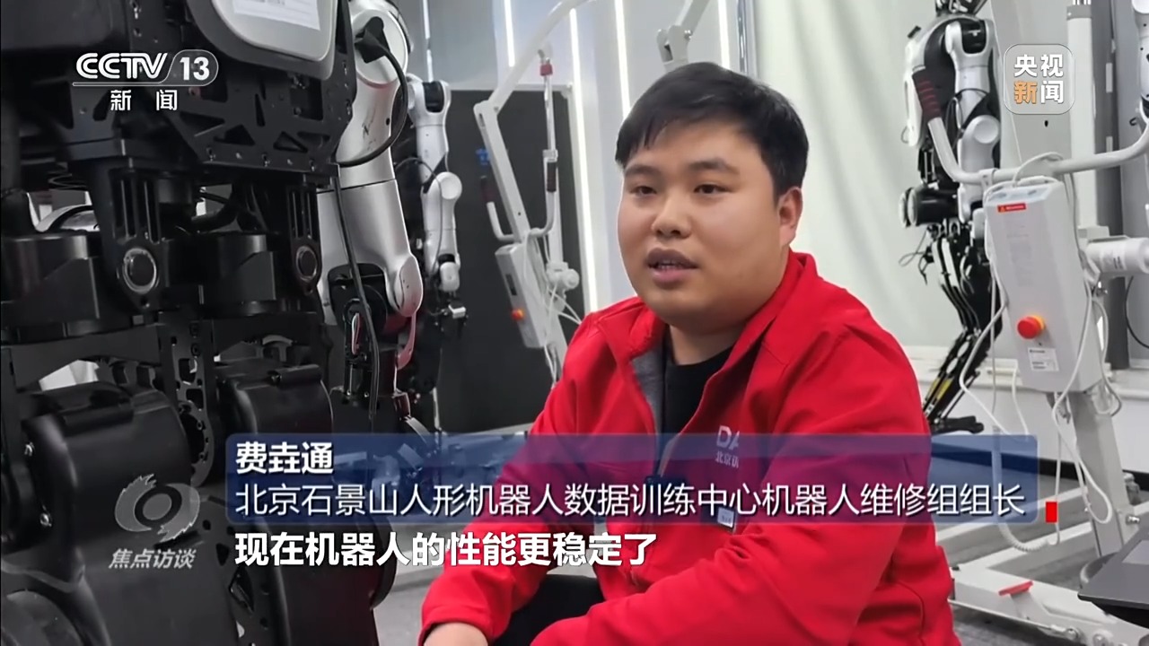 北京石景山人形機(jī)器人數(shù)據(jù)訓(xùn)練中心機(jī)器人維修組組長(zhǎng) 費(fèi)垚通:半年前,機(jī)器人需要維修的頻率比現(xiàn)在高,現(xiàn)在機(jī)器人的性能更穩(wěn)定了。但是,真正走入實(shí)際工作場(chǎng)景,還需要很多訓(xùn)練任務(wù)。不過(guò)看到它現(xiàn)在的進(jìn)步效率,我堅(jiān)信它能夠在不久的未來(lái),在更艱苦、更危險(xiǎn)的環(huán)境替我們分擔(dān)工作,我相信這一天一定會(huì)到來(lái)。