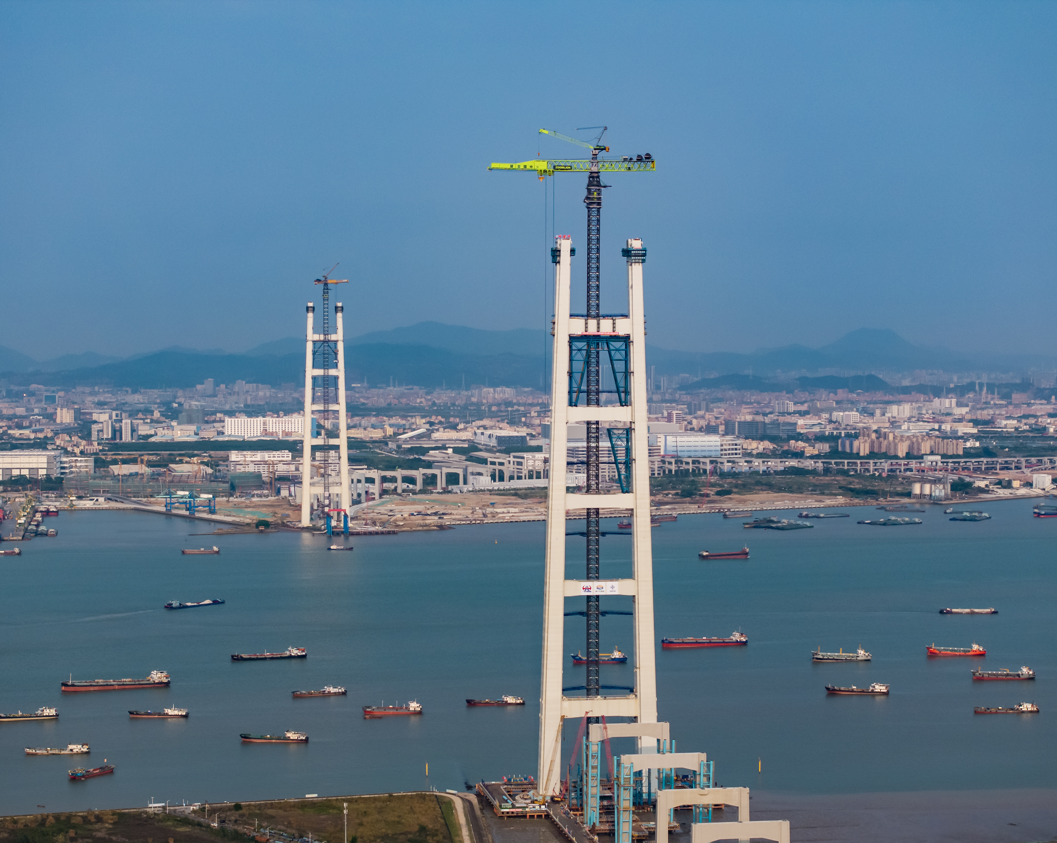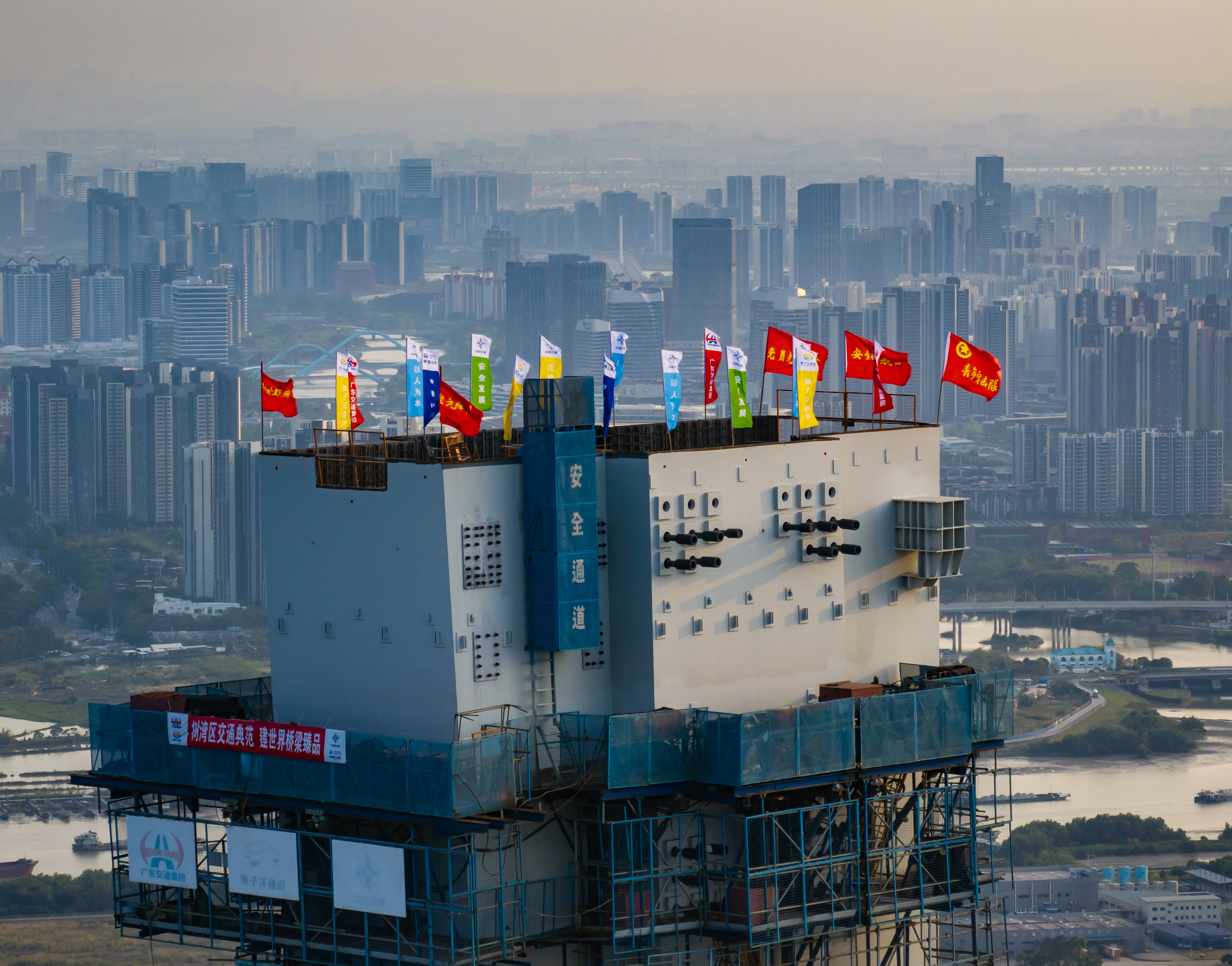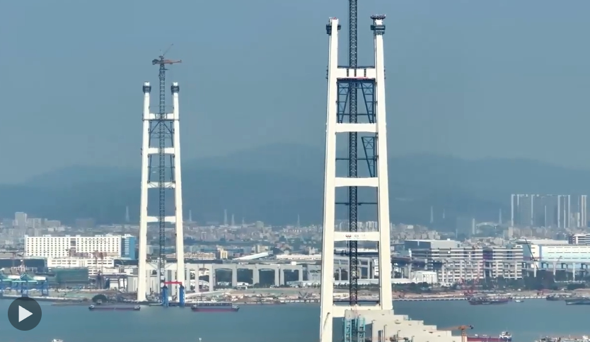 3月26日上午11時,粵港澳大灣區(qū)核心樞紐工程獅子洋通道迎來重大進展,其關(guān)鍵控制性工程——獅子洋大橋東、西主塔完成封頂,以342米的凌空高度,一舉成為珠江口第一高橋塔、世界最高雙層懸索橋主塔。