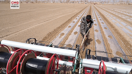 在高標準棉田里,兩臺搭載北斗導航系統(tǒng)的現(xiàn)代化棉花播種機來回穿梭,覆膜、播種、覆土等工序一氣呵成,一臺機器一天可完成上百畝地的播種任務,還能實現(xiàn)無人駕駛、精準直線播種、地膜覆蓋、滴灌帶鋪設等多種工作,播種效率較傳統(tǒng)方式大幅提升。