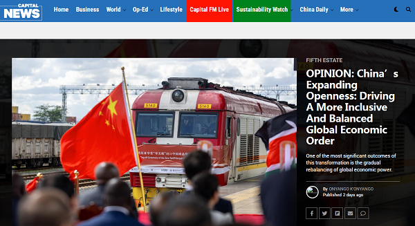 肯尼亞首都調(diào)頻(Capital FM)網(wǎng)站刊文稱,中國(guó)的開放重新定義了中國(guó)與世界的互動(dòng)方式,以及世界與中國(guó)的互動(dòng)方式,正在穩(wěn)步重塑全球經(jīng)濟(jì)秩序。