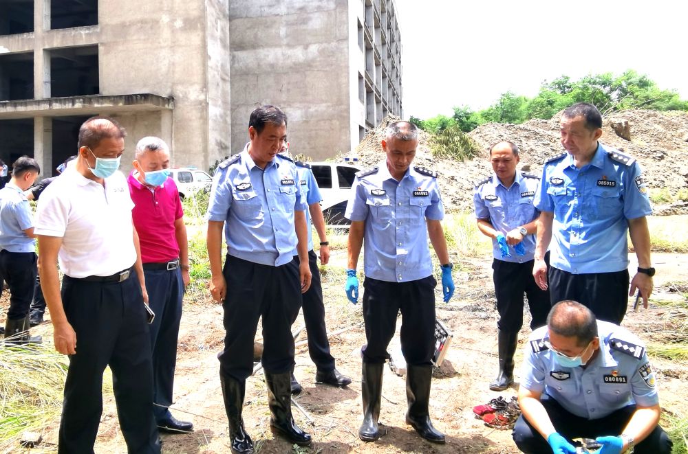 張學(xué)杰(前左三)指導(dǎo)現(xiàn)場勘查工作(2021年8月攝)。新華社發(fā)