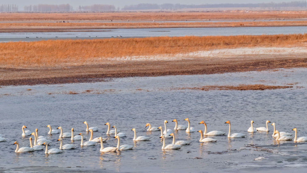 吉林西部江河眾多、濕地密布,是全球候鳥遷徙的重要通道之一。每年春秋兩季,全球約60%的白鶴都會在白城市鎮(zhèn)賚縣停歇覓食,場面蔚為壯觀。