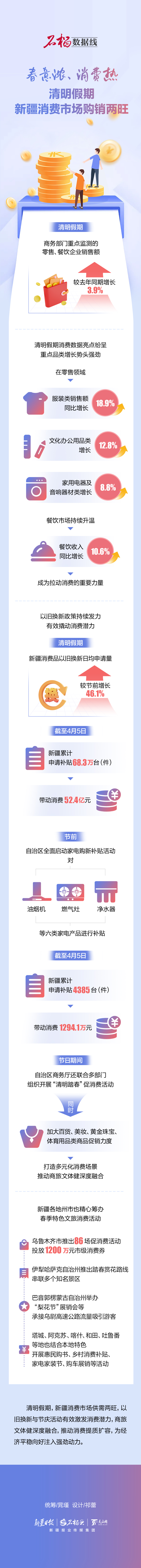 清明假期,新疆消費市場供需兩旺,以舊換新與節(jié)慶活動有效激發(fā)消費潛力,商旅文體健深度融合,推動消費提質(zhì)擴容,為經(jīng)濟平穩(wěn)向好注入強勁動力。