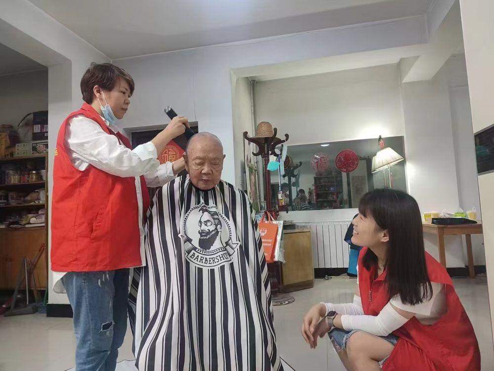 陜西西安碑林區(qū)黃雁社區(qū)的工作人員和志愿者上門(mén)為留守老人提供剪發(fā)服務(wù)。