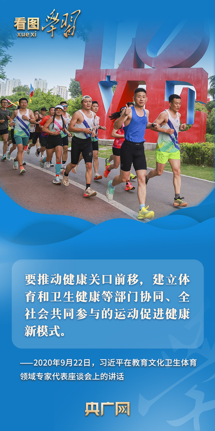 習(xí)近平總書記高度重視提高全民族身體素質(zhì)和生活質(zhì)量,強(qiáng)調(diào)要推動全民健身和全民健康深度融合。作為全民健身的倡導(dǎo)者、踐行者,總書記曾形象地指出,“健康是幸福生活最重要的指標(biāo),健康是1,其他是后面的0,沒有1,再多的0也沒有意義”,要“構(gòu)建更高水平的全民健身公共服務(wù)體系”,以推動全民健身高質(zhì)量發(fā)展,筑牢中國式現(xiàn)代化健康之基。
