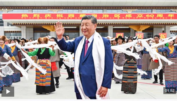 中共中央總書記、國家主席、中央軍委主席習(xí)近平率中央代表團(tuán)20日中午乘專機(jī)抵達(dá)拉薩,出席西藏自治區(qū)成立60周年慶祝活動。習(xí)近平等在機(jī)場和拉薩市區(qū)受到西藏各族群眾的熱烈歡迎。中共中央政治局常委、全國政協(xié)主席、中央代表團(tuán)團(tuán)長王滬寧,中共中央政治局常委、中央辦公廳主任蔡奇等同機(jī)抵達(dá)。