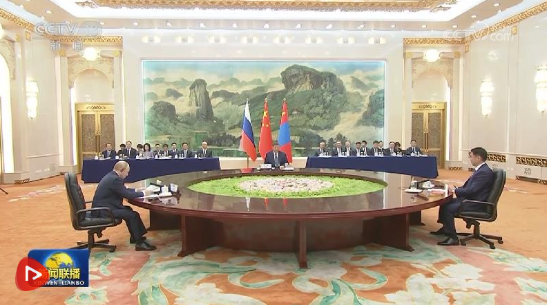 普京表示,俄中蒙是友好鄰邦,有著悠久合作傳統(tǒng)。增進(jìn)政治互信很重要,有利于夯實(shí)三方關(guān)系基礎(chǔ)。俄方愿同中、蒙開展平等互利、面向未來的戰(zhàn)略合作,使三方合作同雙邊合作相互補(bǔ)充、相互促進(jìn)。三方要密切發(fā)展戰(zhàn)略對接,加強(qiáng)互聯(lián)互通,擴(kuò)大貿(mào)易和投資規(guī)模,深化金融、能源、數(shù)字經(jīng)濟(jì)、教育、環(huán)保、旅游等領(lǐng)域合作交流,助力各自經(jīng)濟(jì)發(fā)展,促進(jìn)區(qū)域經(jīng)濟(jì)融合,增進(jìn)民心相通。