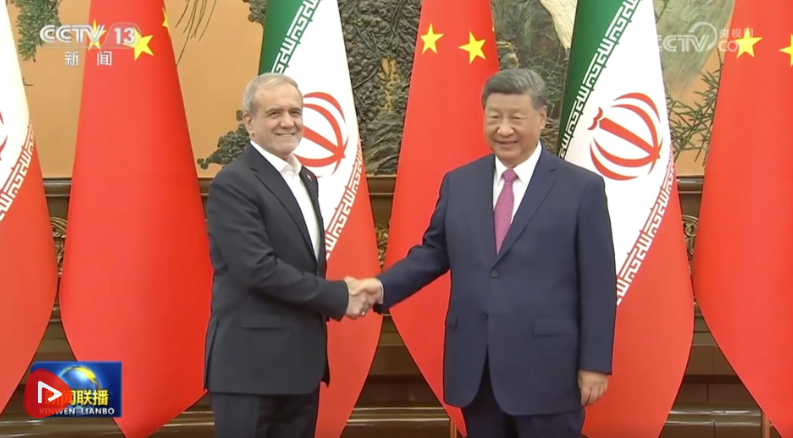 9月2日下午,國(guó)家主席習(xí)近平在北京人民大會(huì)堂會(huì)見(jiàn)來(lái)華出席2025年上海合作組織峰會(huì)和紀(jì)念中國(guó)人民抗日戰(zhàn)爭(zhēng)暨世界反法西斯戰(zhàn)爭(zhēng)勝利80周年活動(dòng)的伊朗總統(tǒng)佩澤希齊揚(yáng)。