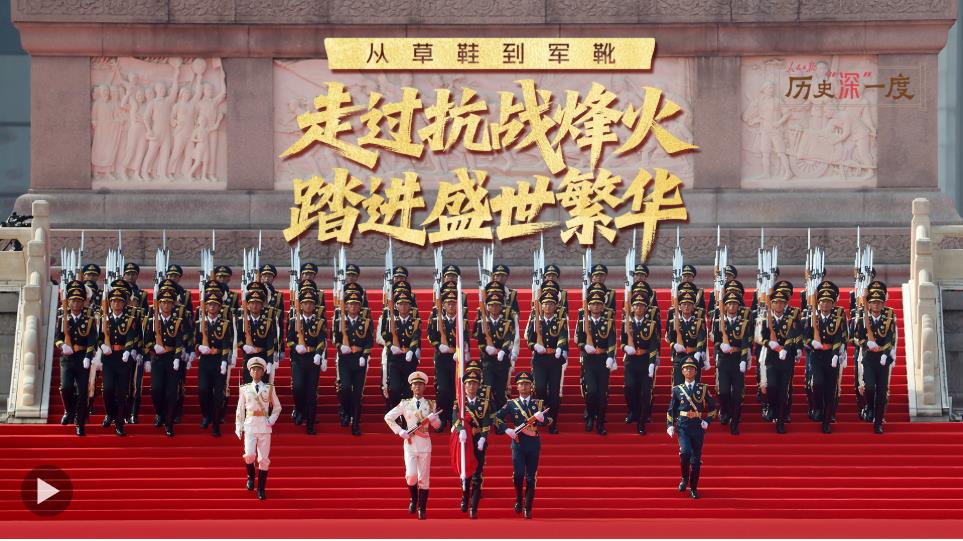 九三閱兵現(xiàn)場(chǎng),一雙雙軍靴見證“中國(guó)排面”,足音中回蕩著人民軍隊(duì)保家衛(wèi)國(guó)的壯志豪情。當(dāng)年,我們以草鞋赴國(guó)難,尋找黎明的曙光;如今,步履所至,皆是山河無恙。