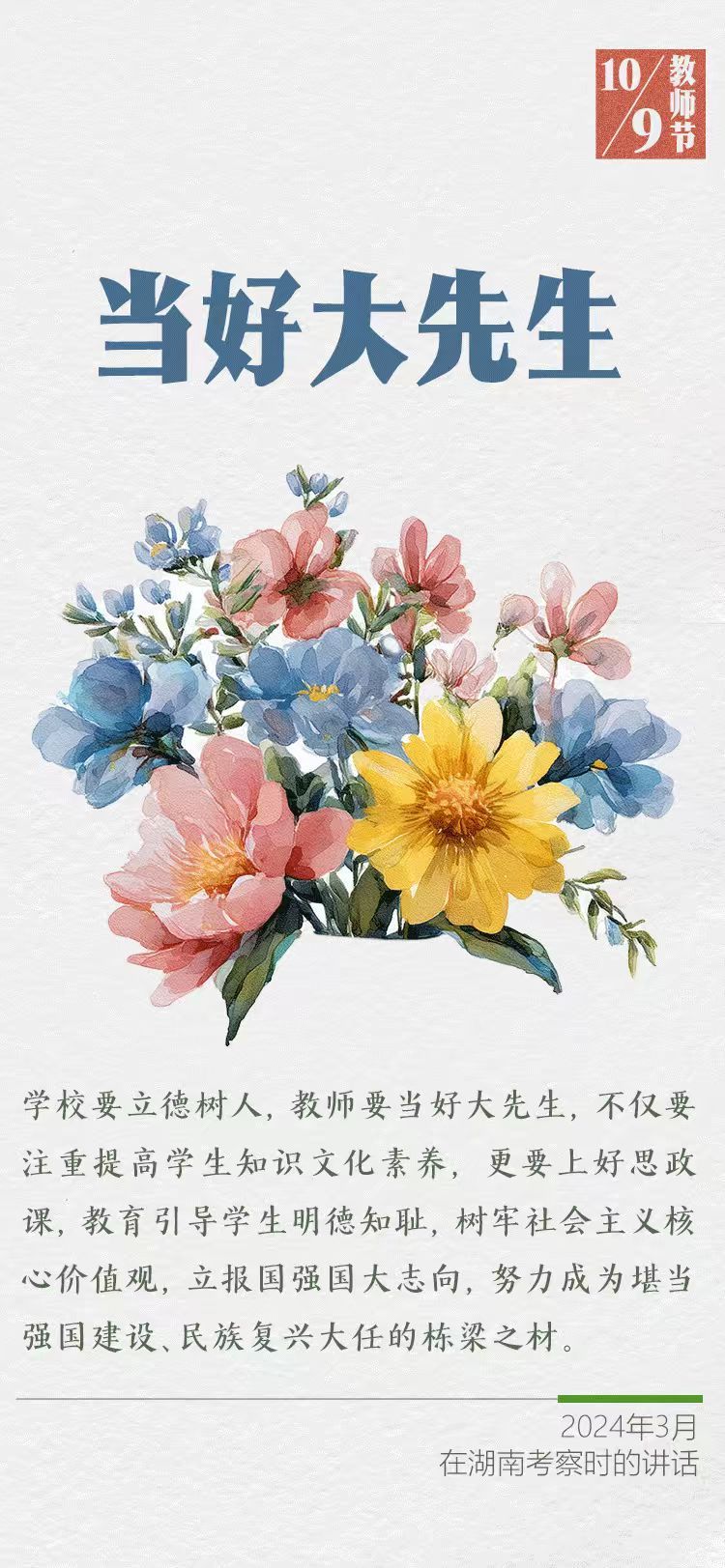 在第四十一個教師節(jié)到來之際,習(xí)近平總書記給全國特崗教師代表回信,提出殷切希望,并向全國廣大教師和教育工作者致以節(jié)日祝賀和誠摯問候。