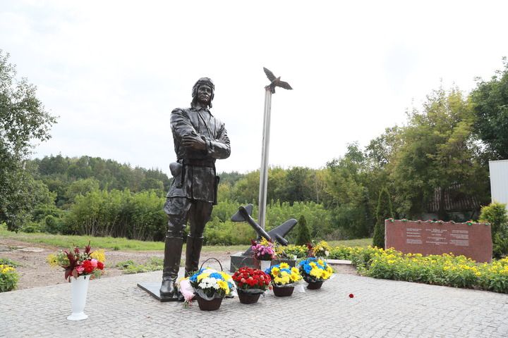 烏克蘭第聶伯河沿岸,秋日的陽光灑在庫里申科學(xué)校對面的廣場上。身著飛行服的蘇聯(lián)空軍志愿隊重型轟炸機大隊少校大隊長庫里申科的雕塑目視遠(yuǎn)方,在他身邊,一只銅制“蘇聯(lián)雄鷹”展翅翱翔。