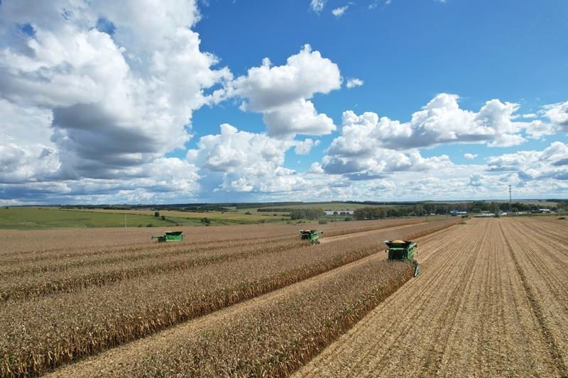 2025年9月10日,在北大荒集團黑龍江建設(shè)農(nóng)場有限公司第三管理區(qū),大馬力機車在進行玉米搶收作業(yè)。