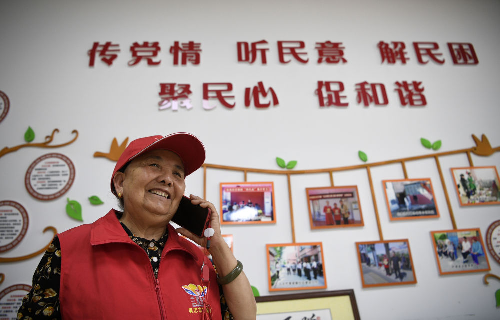 2005年,寧夏吳忠市回族婦女王蘭花從社區(qū)居委會(huì)主任崗位退休后,與6名老同事成立了“王蘭花熱心小組”。她帶領(lǐng)團(tuán)隊(duì)二十年如一日?qǐng)?jiān)持志愿服務(wù),每天奔走在社區(qū)各個(gè)角落,照顧空巢老人、留守兒童,化解矛盾糾紛,幫助解決社區(qū)居民的操心事、煩心事、揪心事,用無(wú)私奉獻(xiàn)溫暖著每一個(gè)人的心田,成為社區(qū)志愿服務(wù)“領(lǐng)頭羊”,吸引越來(lái)越多的人加入志愿服務(wù)隊(duì)伍。這是2021年6月16日,王蘭花在社區(qū)工作站與居民通電話。