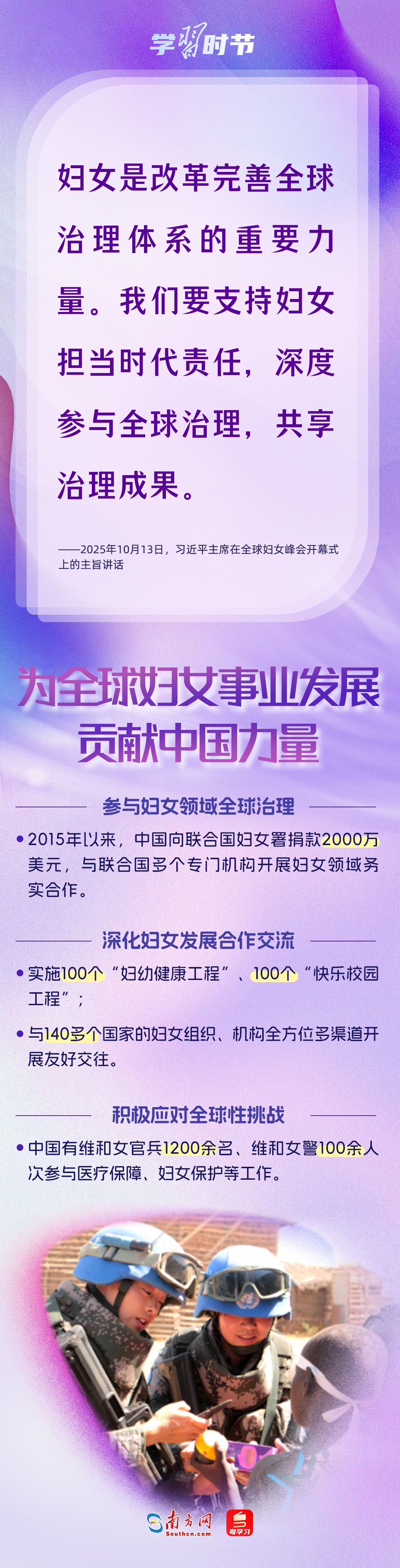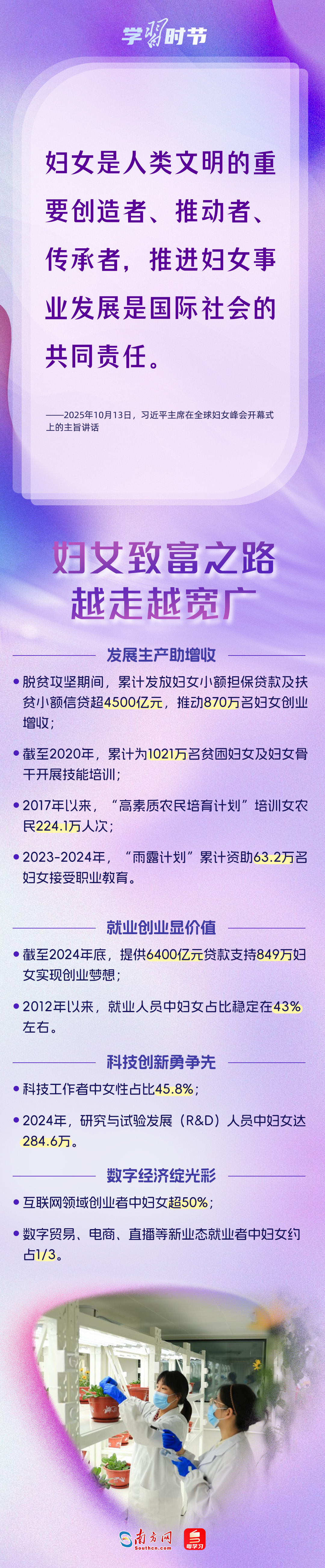 自1995年承辦聯(lián)合國(guó)第四次世界婦女大會(huì)后,我國(guó)堅(jiān)定落實(shí)《北京宣言》《行動(dòng)綱領(lǐng)》,始終是全球婦女事業(yè)重要參與者、推動(dòng)者、引領(lǐng)者。進(jìn)入新時(shí)代,我國(guó)婦女發(fā)展水平全方位躍升,為全球提供了中國(guó)樣本。