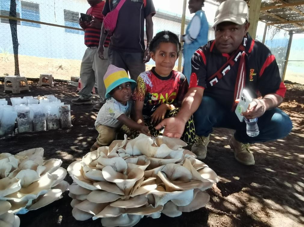 △2025年9月29日,在巴布亞新幾內(nèi)亞東高地省首府戈羅卡市,當(dāng)?shù)孛癖妳⒂^中國援巴布亞新幾內(nèi)亞菌草旱稻項目永久性示范基地。
