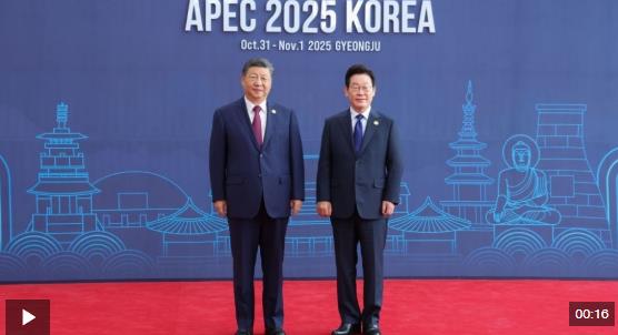 習(xí)近平主席抵達時,韓國總統(tǒng)李在明熱情迎接。兩國元首握手、合影,留下珍貴的“APEC瞬間”。隨后,兩位領(lǐng)導(dǎo)人微笑交談,共同步入會場。