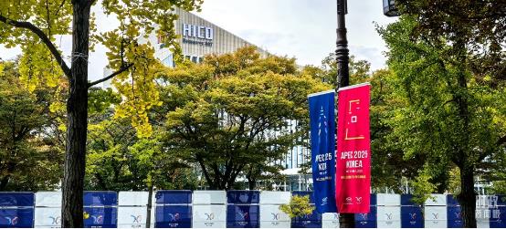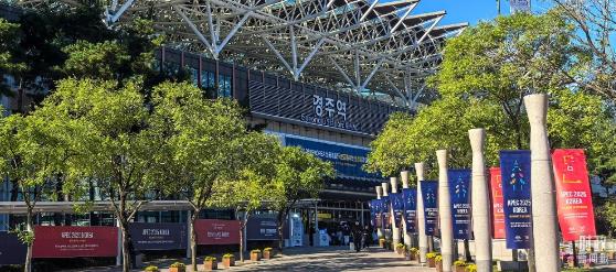 △慶州和白會議中心外。(總臺央視記者范凱拍攝)