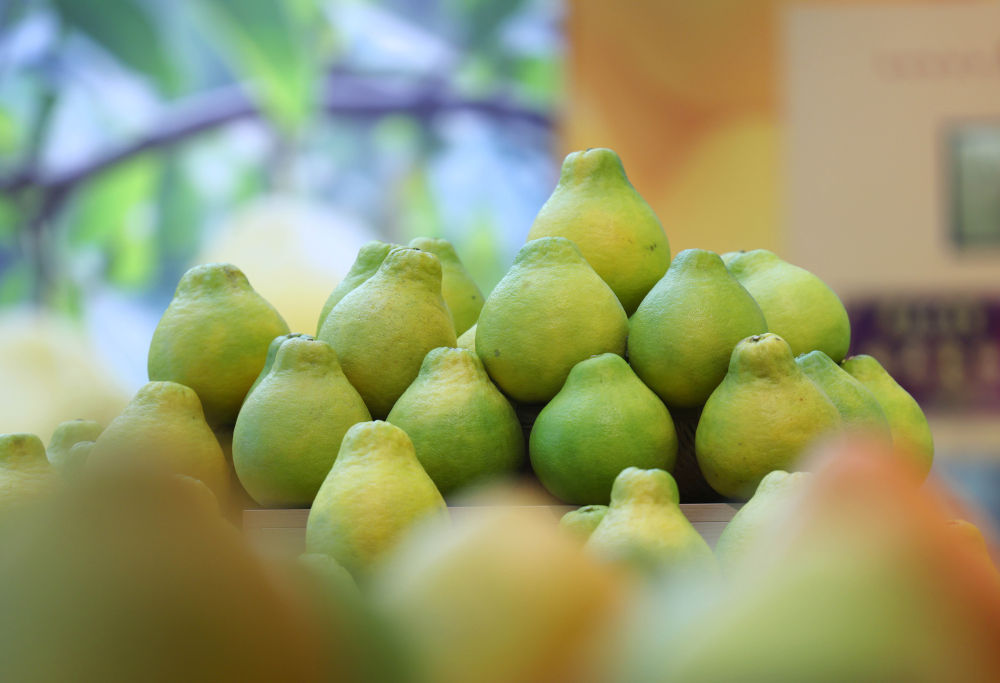 2025年11月7日在梅州南福金柚種植基地拍攝的金柚及相關產品。